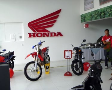 A Honda dealership building with bright signage in San José del Guaviare